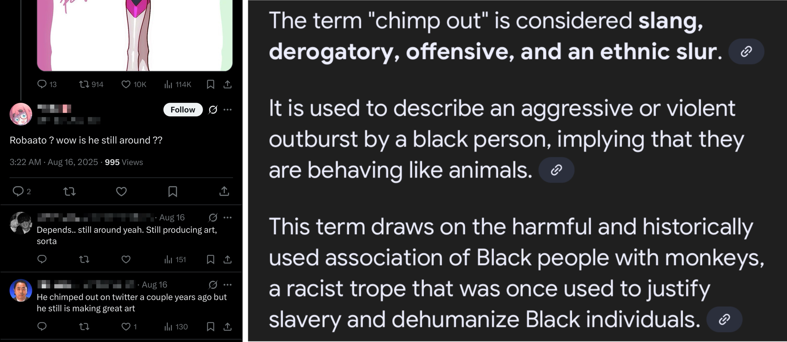 Like, let’s be real: AI can already do everything every single artist can do. I was doomed from the beginning, because of pointless traits like my skin tone or doing kind things for people. “It must be nice” to have a popular art career that you have to constantly defend yourself over and block tons of harassment for merely existing, while people who are drawing the same exact shit as me is getting away scot-free while doing actual fucked up shit to people behind the scenes. I wish I cared about exposing based on the new receipts I have from close acquaintances now, but I can’t even muster a fuck anymore. Everyone dies in the end. It’s all futile.